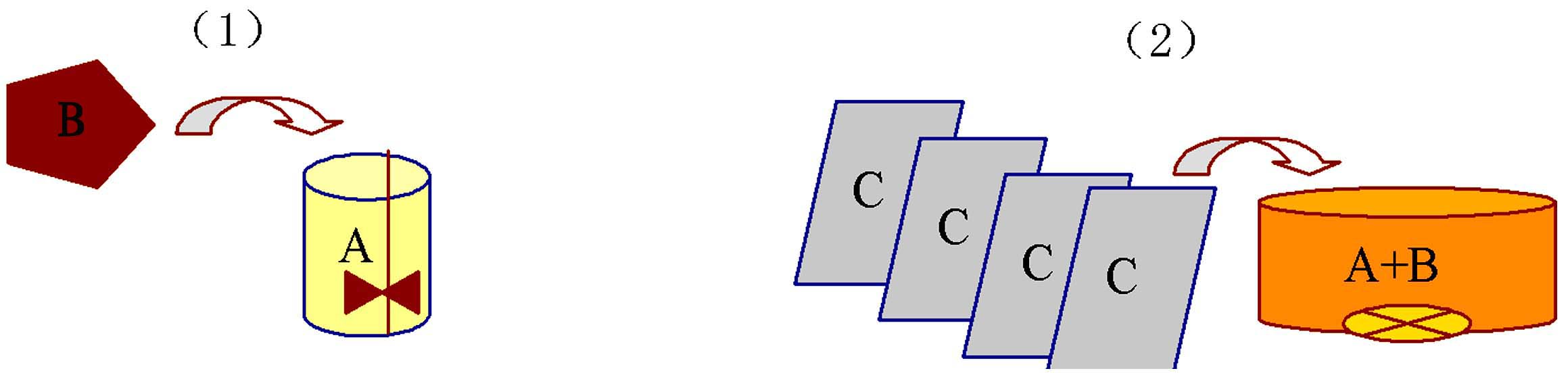 2)在低速大功率搅拌机(15-20rpm)中加入C(填料)使与之A、B混合物混合,充分搅拌至骨料全部浸润即完成,约需5-10分钟;