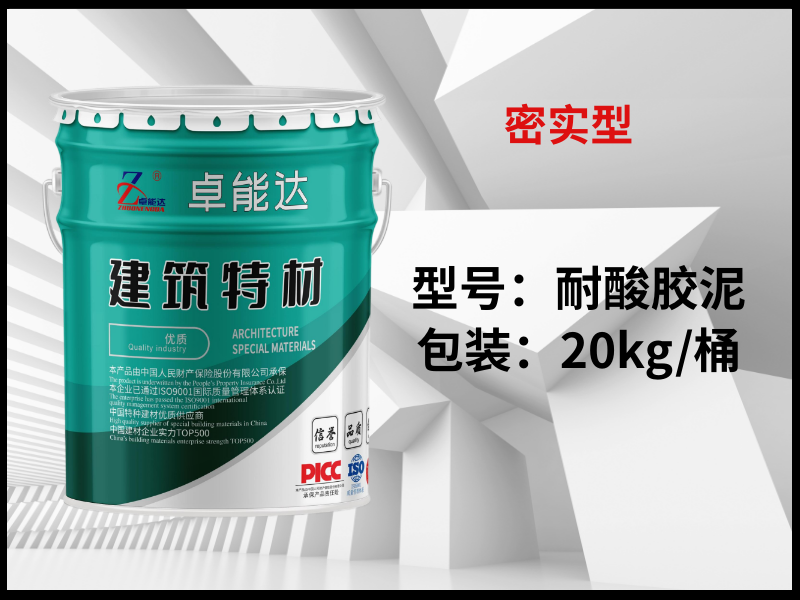 青岛卓能达耐酸混凝土是以水玻璃(泡花碱)为胶结材料,配制而成的耐酸耐热材料,产品为双组分,即:水玻璃液体和水玻璃胶泥粉末混合料,按不同用途可分别配制成耐酸耐热胶泥、耐酸耐热砂浆、耐酸耐热混凝土、水玻璃胶泥、水玻璃胶泥混凝土、密实型水玻璃混凝土。主要用于耐酸池,贴耐酸砖,脱硫塔、污水池等。二、应用范围(1)用于有酸蚀地面、耐酸水池、贴耐酸砖等。(2)用于石油、化工、冶金、电力、农药、食品、发酵、水解、酸洗等工业部门的反应釜,贮罐、塔池、地坪、地沟、电解槽等防腐蚀工程中。(3)耐酸胶泥砌筑的耐酸板材可用做烟囱、烟道的衬里、烟气除尘及脱硫塔理想的耐热防腐蚀材料。(4)耐酸胶泥也可用作耐酸套管的接口材料和设备块材衬里的胶结材料。三、性能特点(1)耐酸性能,耐大多数的无机酸、有机酸、呈酸性反应的盐类(含氟酸及其盐类除外),各种氧化性介质(如:氯气,双氧水等)。 (2)耐酸性能稳定,特别是在稀酸、工业水、中性水溶液中不产生结晶盐。 (3)耐高温,可耐100-300度高温,适合高温环境使用。 四、施工方法1、施工步骤:基层干湿度验收及施工准备基层和面砖表面清理找平配制胶泥贴砖(抹面)养护 酸化处理2、环境要求:混凝土基础温度不得低于10℃,厚度10cm以上,施工两个月以上且保持干燥状态。 耐酸胶泥施工时适宜的环境温度应在15℃-33℃,大气相对湿度不超过80%。3、养护:耐酸面层或贴铺耐酸砖勾缝应在凝固后干燥状态下养护15-20天,气温低可适当延长养护时间或升温养护。养护期间进行多次(一般3-4次,间隔4-6小时)酸洗处理,可采用中等浓度(40-50%)硫酸、盐酸或15-20%硝酸刷涂,每次刷涂酸液前应清除表面白色析出物。严禁水养或蒸气养护。4、其他注意事项:①施工前应对施工操作人员进行技术培训和技术交底,避免盲目施工和无序施工。②配好的材料应在30min内使用完毕,已经初凝的胶泥不可再次加任何液体拌合使用。③胶泥和砂浆施工厚度以5-10mm为宜,超过2cm要分层施工或采用耐酸混凝土,分层施工时,要待上一层完全干透再进行下一层。贴砖或石材时应稍用力挤压,使胶泥挤出板缝,再用刮刀刮平多余胶泥。④如大面积涂抹施工,应注意配料均匀,涂抹薄厚均匀。涂抹后避免阳光直射和雨水浇淋,避免空气流速过大。⑤涂抹施工时,应尽量一次成型,避免反复涂抹收面。⑥未凝固前,禁止随意踩踏、用力触碰,以免出现早期剥落。⑦材料凝固时间与环境温度有一定关联,施工时应采取适当的升温和降温措施,以满足材料适宜的凝固时间。五、包装储运1. 本产品为双组份:20KG/桶、25KG/袋。2. 宜放置在室内5~25℃、阴凉、干燥、通风处保存。...