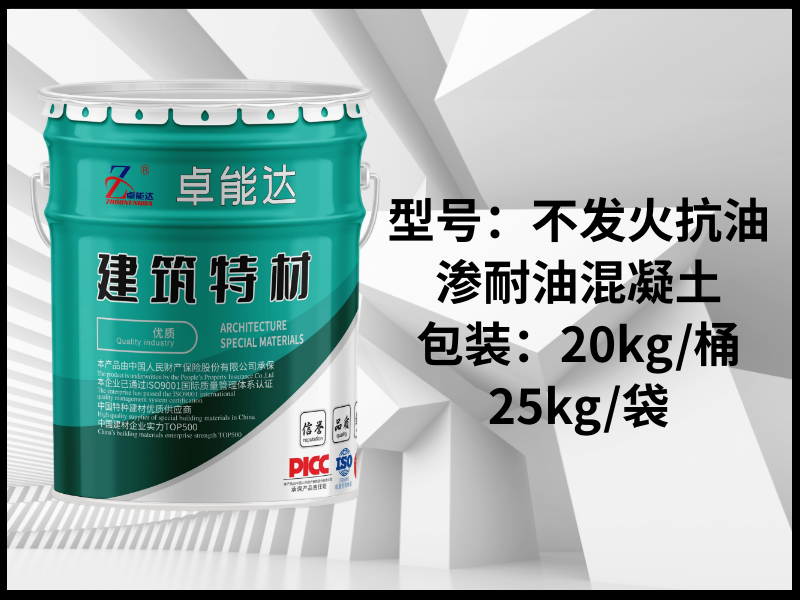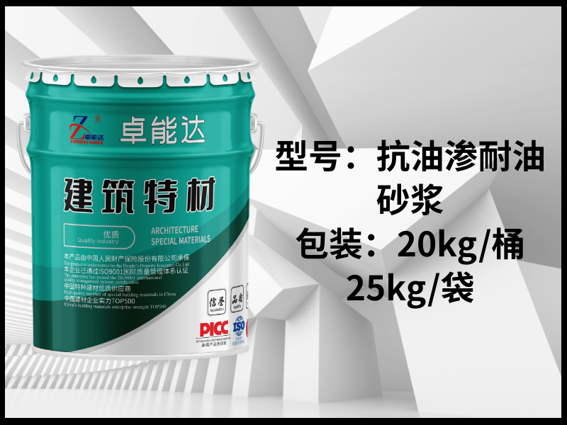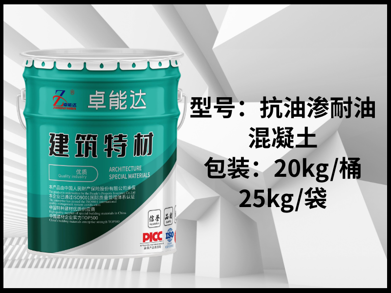 青岛卓能达抗油渗耐油混凝土是一种经过特殊处理的混凝土,也被称为抗油渗混凝土。它通过在普通混凝土中添加密实剂(如氢氧化铁、三氯化铁或三乙醇胺复合剂等),并经过充分搅拌后形成,这种混凝土具有良好的密实性和抗油渗性能耐油混凝土能够有效地防止矿物油、植物油、动物油等各种油类渗入其内部,从而保护混凝土的界面粘结力,避免因油质渗入而导致的混凝土酥松破坏。它的抗油渗等级可以达到P8~12或S8-S10,这意味着它能够抵御工业汽油、煤油等多种油品的渗透此外,耐油混凝土还具有施工操作简单、经济实惠等优点,特别适用于油罐、油槽等需要防油渗的底板和地坪面层工程,以及有油类物质存在且需要防止油渗漏污染环境、影响建筑结构及使用功能的场所,如油库、加油站、食品加工厂、机械制造车间。一般机械工业生产过程中,由于传动、金属切削以及研磨流溅出来的油类,如某些矿物油或植物油等,大部分油污密度小、粘度低、渗透能力强,易破坏水泥与骨料之间的粘结,有的油类尚含有一些偏酸类与酯类,对结构的强度影响很大,本产品为解决以上问题的专用抗油砂浆,密实度强,抗油渗性能好,可起到其它材料不可替代的作用。二、应用范围1、 有防油渗要求的楼面、墙面、地面、各类设备基础;2、 适用于抗渗性能要求较高的贮存轻油类和重油类的油灌工程;3、 各类耐油底板、车间地坪等,性能高于常规地面材料。三、性能特点1、 抵抗各种植物油、动物油以及矿物油类的渗透;2、 防止弱酸性和弱碱性液体对基面的渗透腐蚀;3、 该产品为干混搅拌料,加水即可施工,简单方便;4、 兼具高强抗渗防腐功能。四、施工方法参考用量:2200kg/m³1、基层处理:基层应平整、坚实,表面浮尘、灰尘、油污等应清除干净,渗漏水部位应先用堵漏材料处理,对于有金属、塑料管不同材料接触的部位其周围应打磨干净。基层过于干燥时,可先洒水湿润,没有明水时可进行下道施工。重油污区域地坪上,在使用耐油水泥砂浆面层后需加防油渗封闭剂一道,效果更好。2、搅拌:计算好用量,按厂家建议加水量加水搅拌后根据施工厚度进行涂抹随打随抹光。建议施工厚度大于2cm。打磨:根据要求打磨抛光,由粗到细多次打磨压光。3、养护:待材料初凝后可进行酒水养护或者覆膜养护,养护期3-7天五、包装储运1)包装 : 袋装,25KG/袋。(2)贮存: 宜在室内阴凉、干燥、通风处保存,注意防水防潮。...